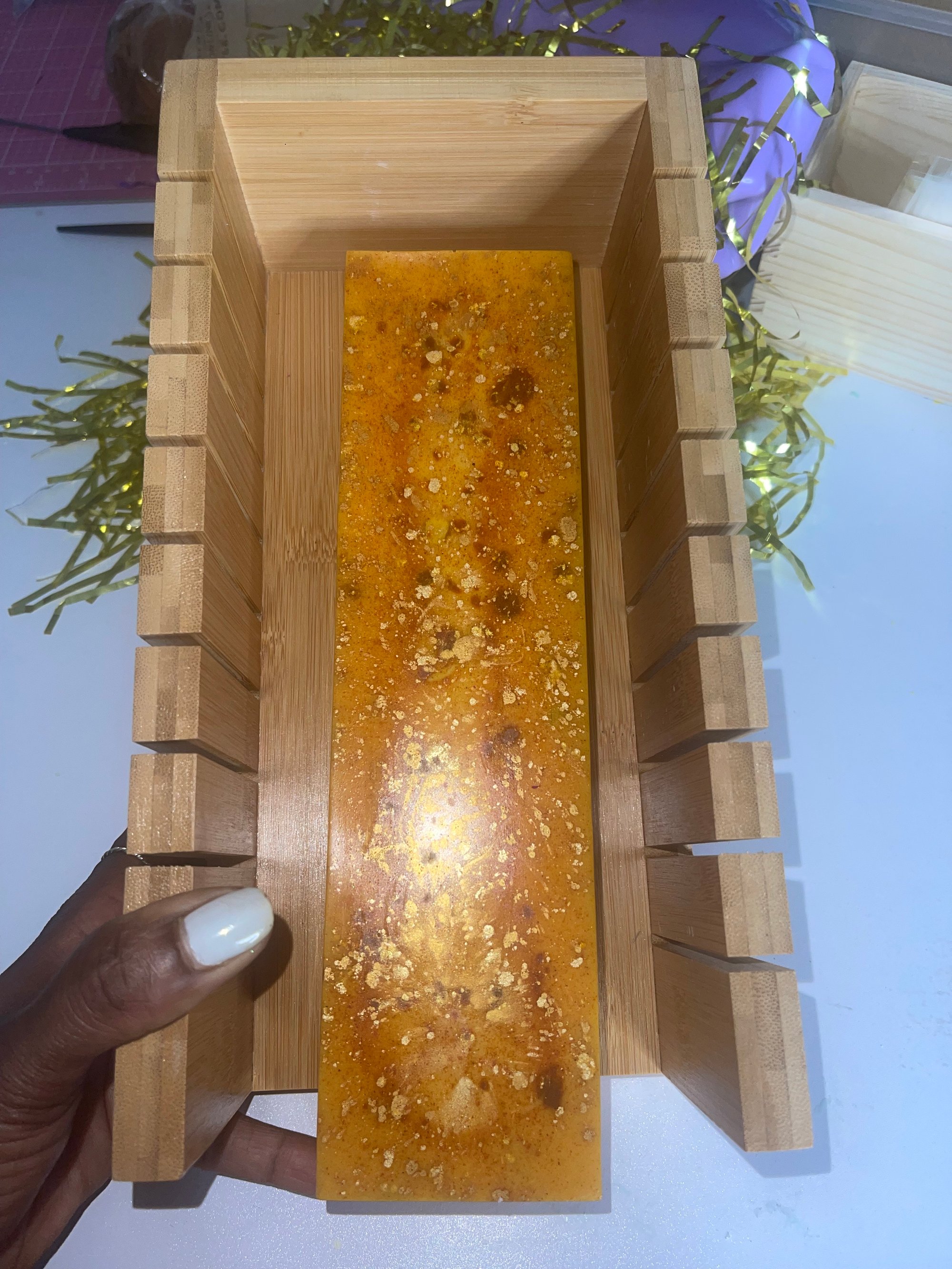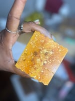 Shea butter based beauty bar with turmeric, rose water, rosemary, money plant & rose petals. 3 oz bar.